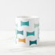 Add a personalized touch to your home with this Customizable Monogram Retro Mid Century Geometric Pattern coffee mug in teal, aqua and orange. Featuring a chic retro design inspired by the 1950s and 1960s, this design allows you to use the "Edit using Design Tool" option to make it uniquely yours. Change the background and box color, adjust the text's font style, color, size, and positioning for a truly custom piece. Perfect for stylish home decor and a thoughtful gift!