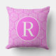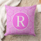 Monogram RF Classic Serif Pink Striped Cubes Throw Pillow