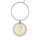 Monogram Rose Cream Blue Circles Wine Charm