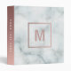 monogram rose gold and white marble stone 3 ring binder