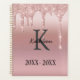 A rose gold dripping glitter monogrammed planner for home, office or back to school.