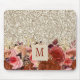 Monogram Rose Gold Flowers Light Gold Glitter Mouse Pad