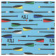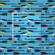 Customize this rowing fabric with your monogram or click the customize button to change the background color. The print features oars in Olympic inspired colors on a blue (changeable) background.