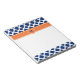 Monogrammed royal blue quatrefoil pattern with orange accent notepad.