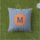 Monogrammed royal blue with orange accent chevron pattern square pillow.