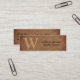 Monogram rustic black script brown leather mini business card