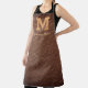 Modern, brown leather, script, monogram apron. Personalize it with your initial and name.