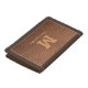 Modern, brown leather, script, monogram wallet. Personalize it with your initial and name.