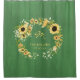 Monogram rustic farmhouse sunflowers wreath green shower curtain