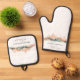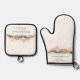 Monogram Rustic Watercolor Mountains Oven Mitt & Pot Holder Set