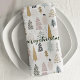 Modern winter trees pattern with dark green "merry christmas" message and subtle monogram initials are featured on this white 12"x12" cloth cocktail napkin. Easily change or remove the greeting text and initials to make it yours using the Template provided. Also available in a 20"x20" dinner napkin and, both sizes in sets of four at a discount. 100% grade-A woven cotton, machine washable and made in the USA. See "About This Product" for more information.