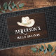 Fun personalized custom bar mat. Simple, stylish, elegant black and white design. Rustic Wood, string lights, country, distressed, family name, monogrammed bar mat.