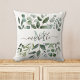 Monogram Sage Green Eucalyptus Greenery Leaves Throw Pillow