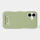 Personalized monogrammed stylish modern refined iPhone case, customizable personalizable with monogram, initial letters and name. Feminine chic premium look, sage green background, elegant white calligraphy script handwritten initial letters, and classy black typography for the name. Beautiful and timeless, for you to protect your cellphone, or as a thoughtful custom fashionable useful electronic tech accessory gift idea. Also it is very affordable, a gift under 35 dollars for her. Appropriate to be used for the personal cellphone or as a professional business phone accessory case.