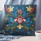 Monogram Scandinavian Folk Art Rosemaling Floral Throw Pillow
