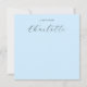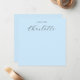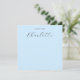 This note card features your name in a handwritten script calligraphy "note from" on a blue background.