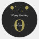 Monogram Script Happy Birthday Black White Gold Classic Round Sticker