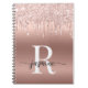Monogram Script Rose Gold Metal Glitter Drips Notebook