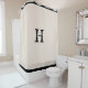 Beige, black and white shower curtain with last name and initial with a black border and black initial. Background can be any color, as can font. from HAMbyWhite Glove aka HAMbWG