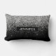 Silver and Black Sparkle Glitter Monogram Name and Initial Lumbar Pillow. This makes the perfect sweet 16 birthday, wedding, bridal shower, anniversary, baby shower or bachelorette party gift for someone that loves glam luxury and chic styles.