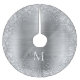 This gorgeous Christmas tree skirt features silver gray brushed metal background with sparkling silver glitter borders. Add your family name and initial for a personal touch.