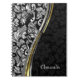 Monogram Silver Gray And Black Damask Notebook