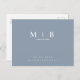 Monogram Simple Sleek Dusty Blue Save the date Announcement Postcard