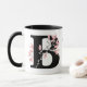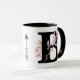 This coffee mug has two monograms, one on front and another on the back. The bold black initial is decorated with pink floral sprays. To change the letter, press "Customize"; choose "text" and then "Edit text".