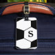Monogram soccer ball luggage tag. Show your personality with this fun and trendy luggage tag. Makes a great gift for all occasions. Customize with your personal information. Click the "Customize it!" button to change the text size, text color, font style and more!