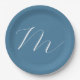 Monogram Solid Blue Pastel Minimalist Professional Paper Plates