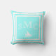 MONOGRAM Solid Teal Aqua Turquoise Blue plain Throw Pillow