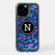 Monogram sparkly blue purple confetti dots on teal speck iPhone case