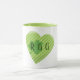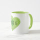 A Monogram design with couple's initials, this St. Patrick's Day mug features a green heart with a striped design. Within the heart is a green clover with a template for monogramming your initials. Purchase yours today!