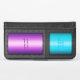 Metallic series: A design with two colored chrome-effect panels, one in sky blue and the other in purple. Both are framed by a riveted steel-look border. So easy to change the monogram initials and placeholder text to yours - just type.
