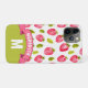 Monogram Strawberry phone case with watercolor strawberries in pink and green pattern easy to personalize with name and initial.