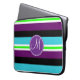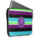 Monogram Striped Pattern Purple Teal Lime Black Laptop Sleeve