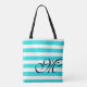 Personalize with your initial. Monogram & Stripes Tote Bag in beach blue aqua!