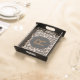 This is a well made, sturdy wooden tray with a flawless black finish and lovely map on the tray surface. It is both vintage & modern at the same time. Looks exactly like the photo; does not disappoint. So nice to find something of quality individually made and not the mass-produced 'shabby chic' merchandise seen in stores. I am so pleased to be able to give this to my college-age niece for her birthday. This can be used as a tray to hold jewelry or toiletries, or hung on the wall as art. The map surface is sealed (it is slightly shiny) so would be moisture resistant. It is well worth the asking price but I was able to apply a sale code as well. Very happy with my purchase. Map is crisp & clear and sealed with a water-resitant finish.