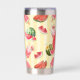 A fresh summer pattern with watermelons, watermelon popsicles, and watermelon drinks on a sunny yellow-striped background. Add your monogram to the insulated tumbler and make it uniquely yours.