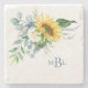 Sunflower & Eucalyptus Foliage Monogram Stone Coaster. Wedding Gift.