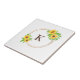 Monogram Sunflowers Gold Frame Green Leaves Rustic Ceramic Tile