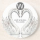 Custom sandstone coasters that you can personalize with your desired monogram and names. Feature swans. These can make a great wedding gift, birthday gift, and more. Use the template to personalize.