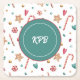 Monogram Sweet Candy Pattern Square Paper Coaster