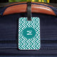 Monogram Teal and White Chevron Pattern Luggage Tag