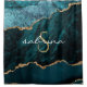Elegant teal blue agate trimmed with faux gold glitter combine in this design. Personalize it with your monogram initial in gold colored decorative font and your name in white handwriting script.
