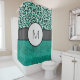 Monogram Teal Faux Glitter and Leopard Print Girly Look Shower Curtain Bath Curtains