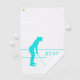 Monogram Teal on White Woman Silhouette Golfer Golf Towel