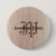 Monogram Template Plank Board Wood Look Old Script Vintage Text Large Round Button.