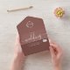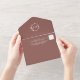 A simple chic foliage faux foil monogram terracotta All In One Invitation. Easy to personalize with your details. Modern boho wedding invitation editable, wreaths photo wedding invitation, customizable, calligraphy handwritten font, simple, elegant.