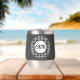 This modern 11 oz. stainless-steel thermal tumbler features a black denim wrap with framed script initials on a black & white houndstooth circle pattern. Simple white script phrase is on the back. Change or remove initials and text using the Template provided. Double walled insulation for temperature retention. Stainless Steel construction for durability. The clear lid is leak-proof. Excellent printing and high reviews. See "About This Product" at side for more information.